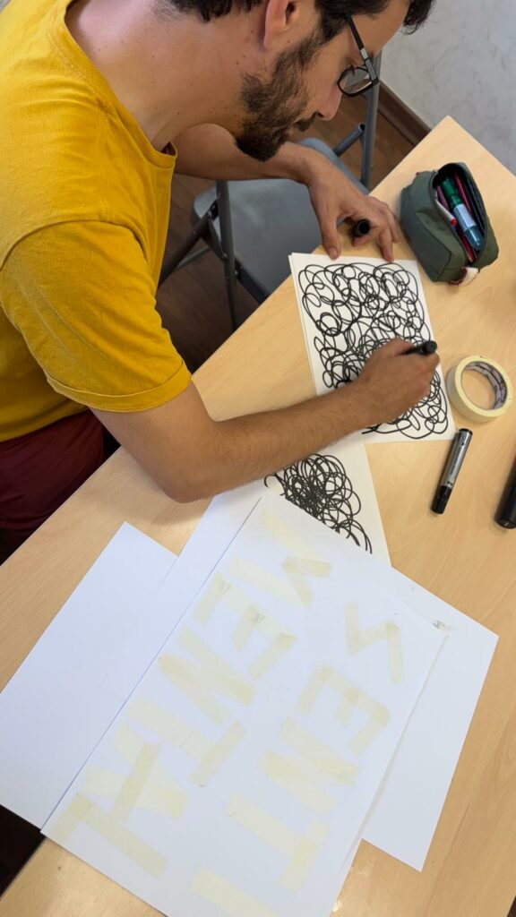 En octobre, Mots Voyageur va atterrir à Marseille dans le cadre du Festival Tangible comme première étape d’une séquence qui se déploiera sur ce territoire en 2026. Malte Martin, designer graphique et plasticien, a conduit des ateliers graphique avec des publics en apprentissage de la langue française en partenariat avec l’association Mot À Mot dans le quartier de la Belle de Mai. Parallèlement il enclencheras un cycle de création typographique autour des mots de la Méditerranée. L’ensemble sera mise en espace en octobre au Couvent Levat et dans les lieux de productions des associations qui ont participé.